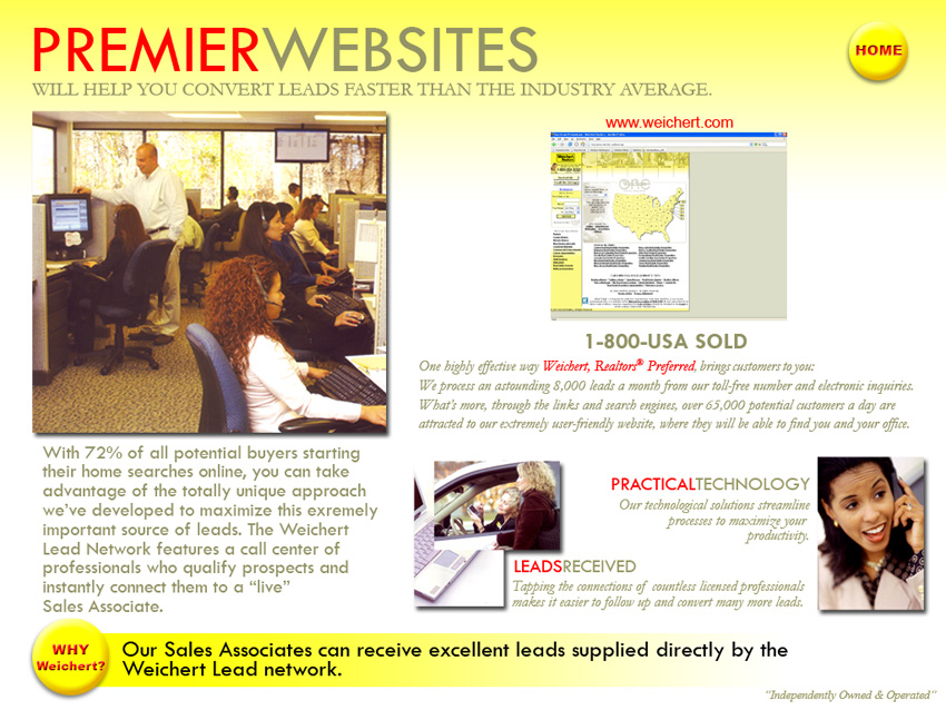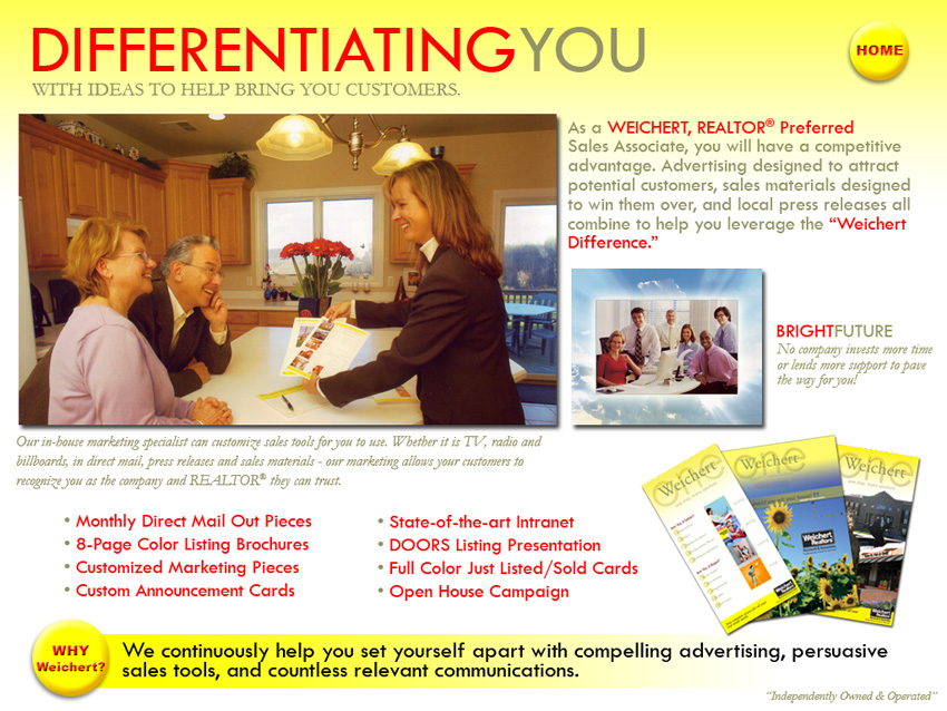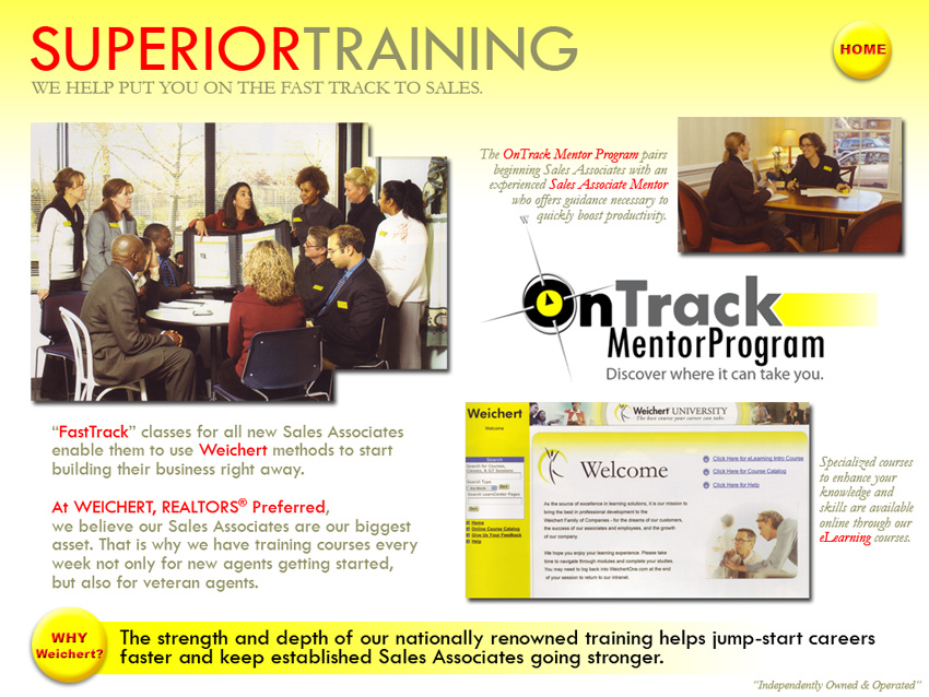 Whether you are looking for a full-time career or would just like to add supplemental income, Weichert has a solution for you! Work as a full time real estate agent and enjoy unlimited income potential, or work as a part-time referral agent.